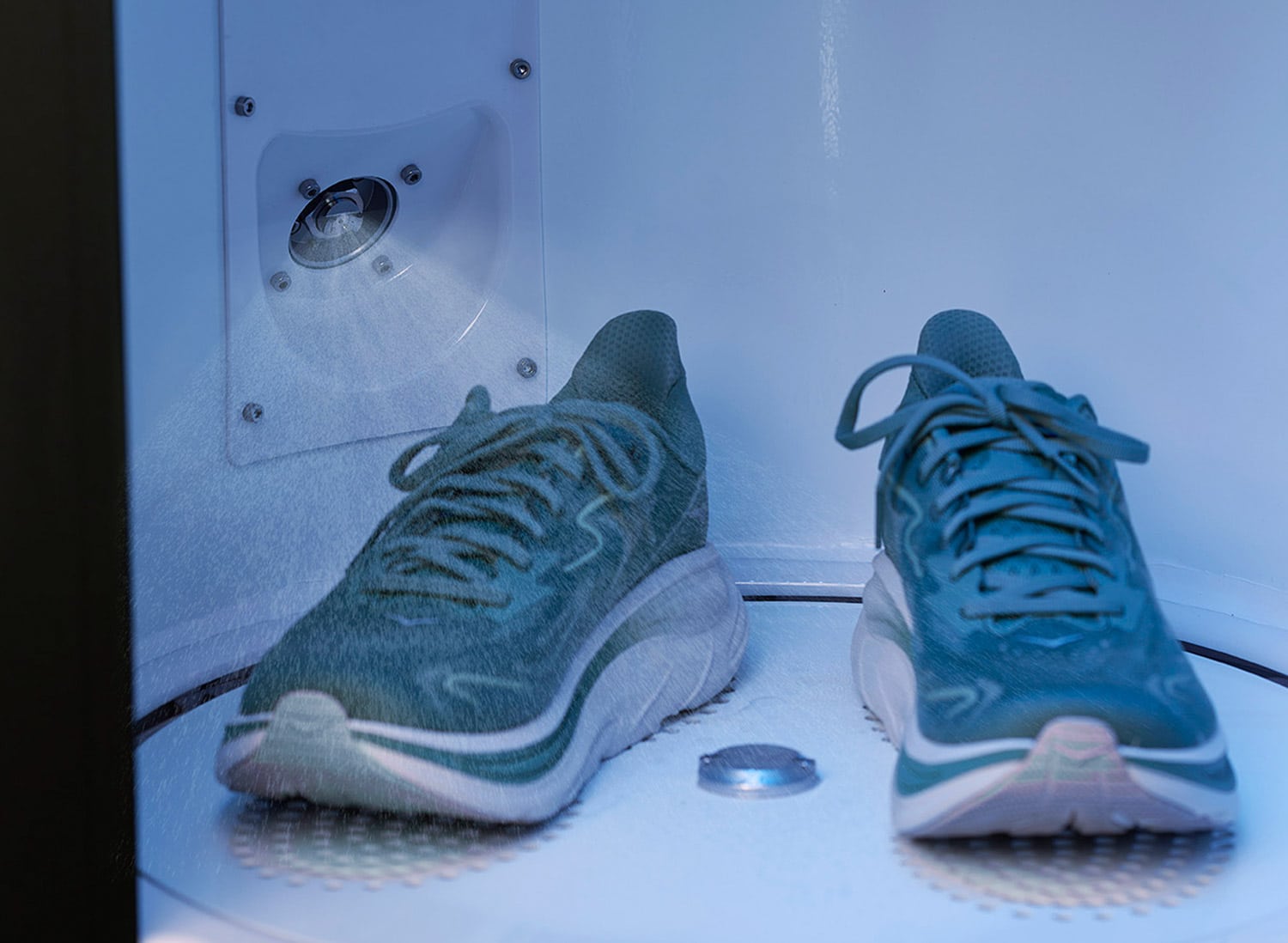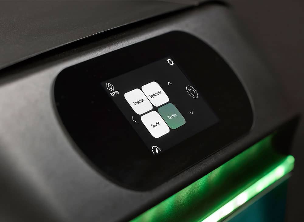 A circular flow of warm, filtered air locks in the formulation, making shoes wearable right away with maximum durability.