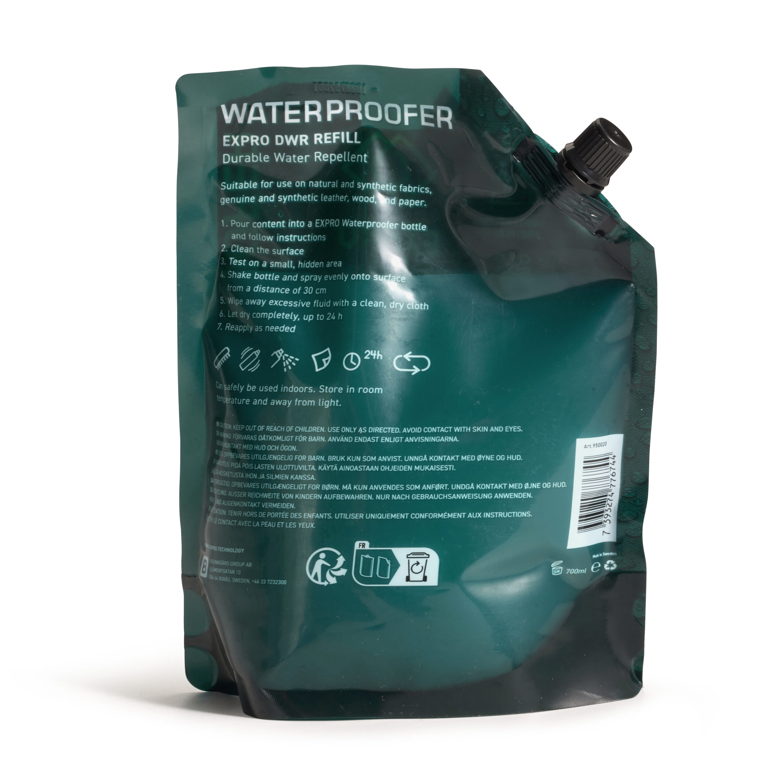 EXPRO Waterproofer Refill is a 700 ml refill pack for Protect Spray. The waterproofer provides advanced, long-lasting protection against water and dirt while maintaining the material breathability. The high-performance formulation forms an invisible barrier that repels liquids and prevents stains without affecting the material’s feel or appearance. A formulation with excellent test results that delivers outstanding water-repellent performance and is certified according to OEKO-TEX® ECO PASSPORT, ensuring safety for both people and the environment.